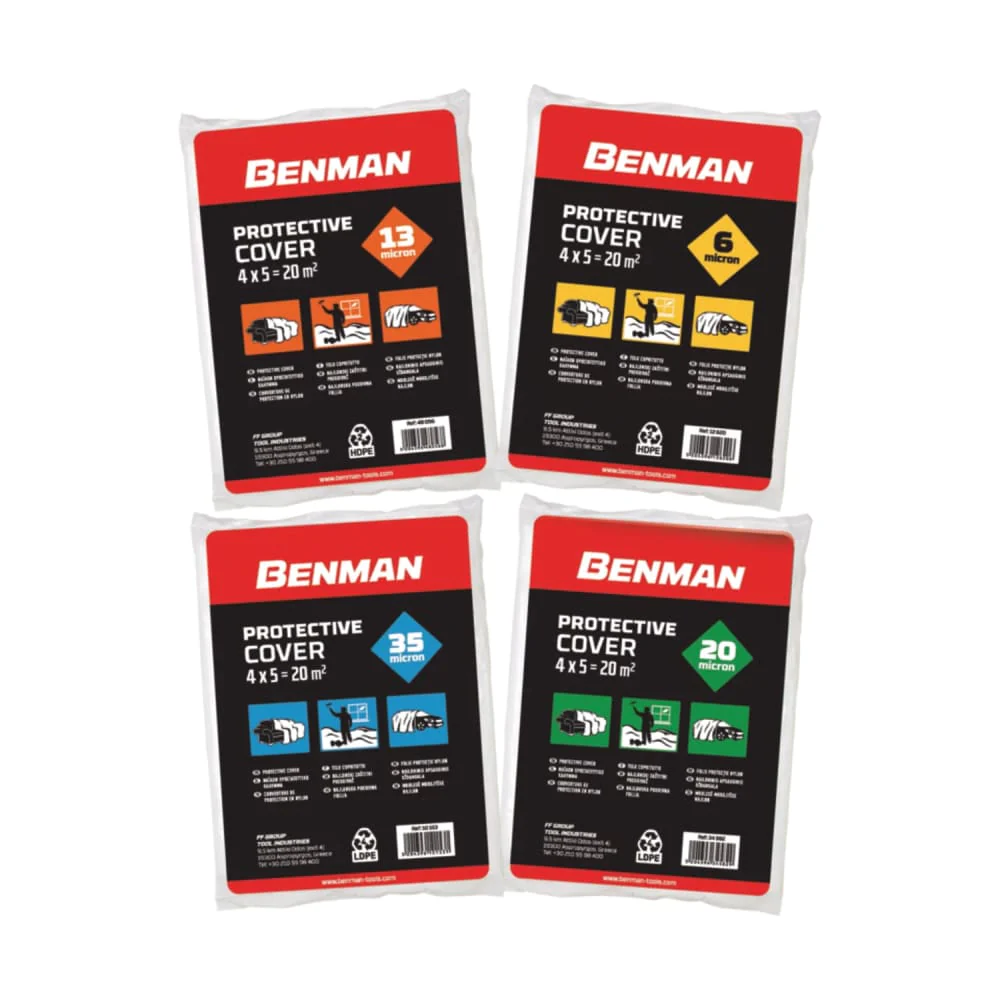 Νάυλον προστασίας Benman χοντρό 4x5m (20m²), πάχους 35 micron. Υψηλής αντοχής για απαιτητικές εργασίες, βαψίματα και ανακαινίσεις.