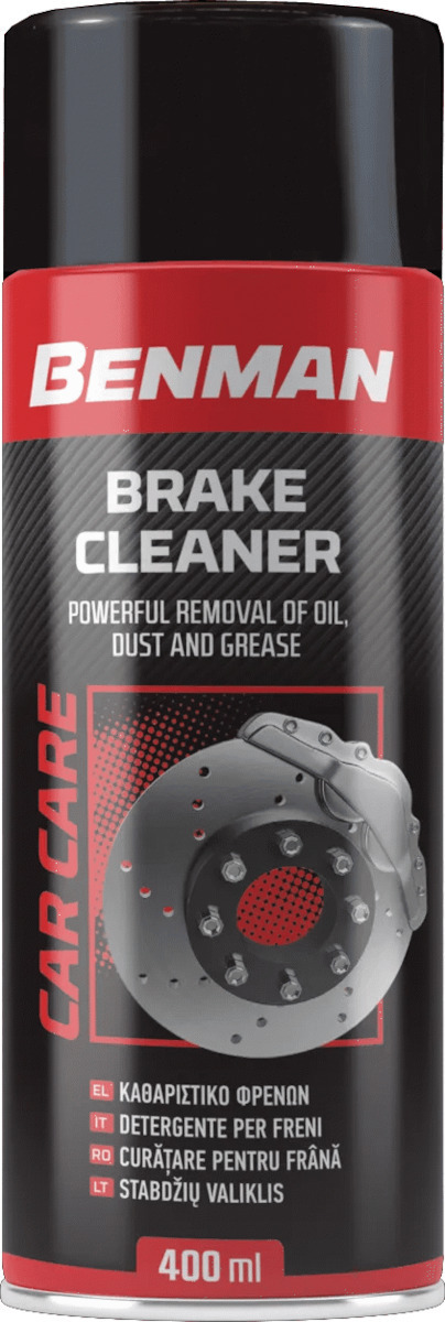 Σπρέι καθαρισμού φρένων Benman 400ml για άμεση αφαίρεση γράσων, λαδιών και υπολειμμάτων, χωρίς κατάλοιπα.