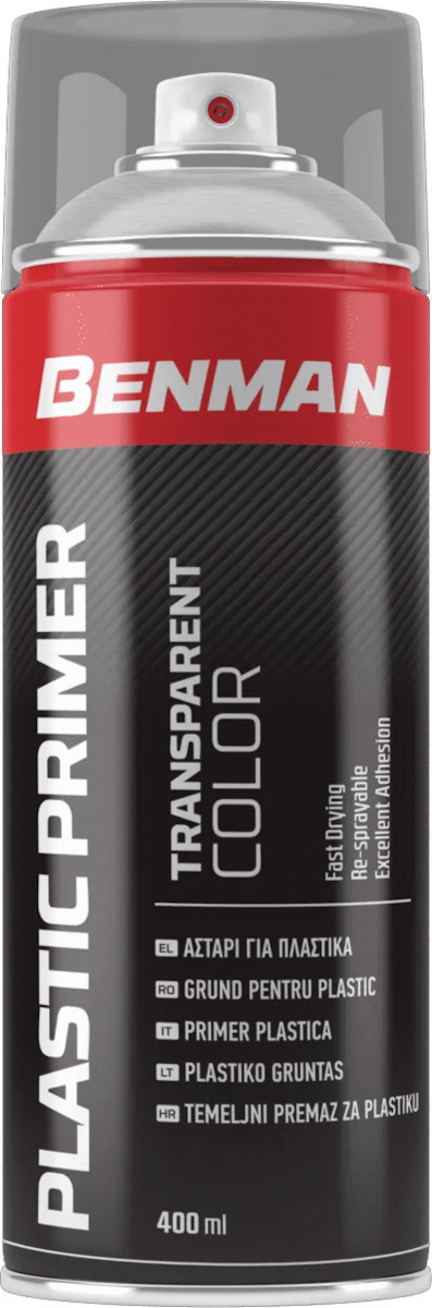 Διάφανο αστάρι σπρέι Benman για πλαστικές επιφάνειες 400ml, εξασφαλίζει ισχυρή πρόσφυση και άψογο τελικό αποτέλεσμα.