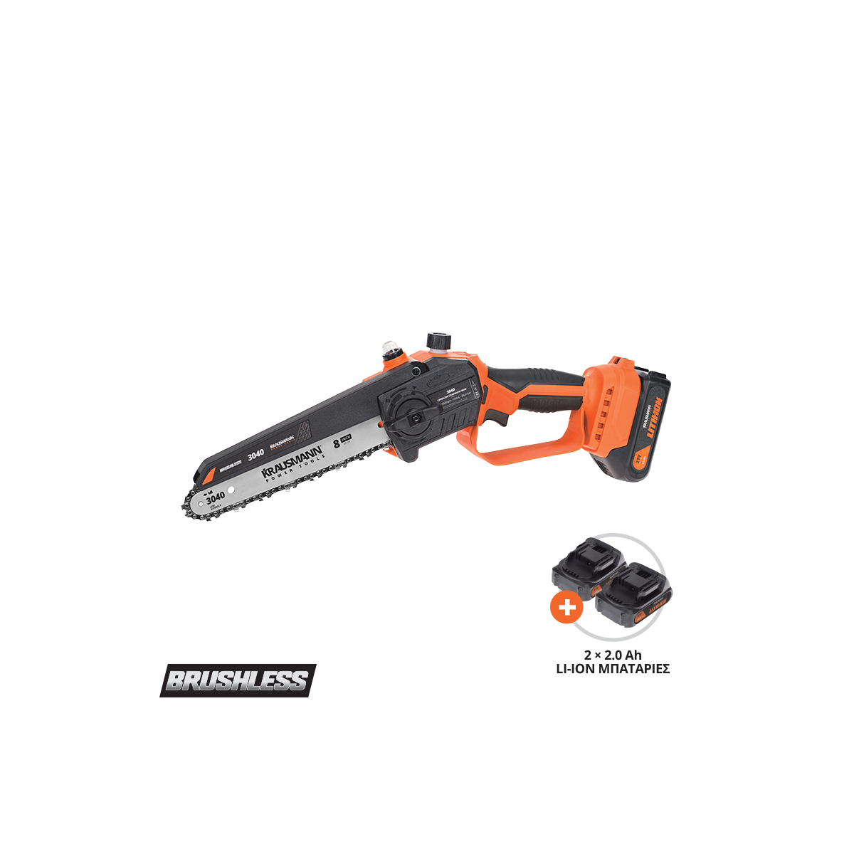 Krausmann Κλαδευτικό Αλυσοπρίονο Μπαταρίας 2x2Ah Brushless 21V 1.28kg με Λάμα 20cm 3041