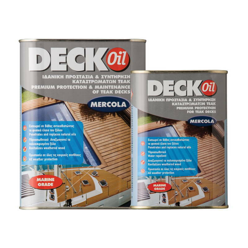 Λάδι προστασίας και συντήρησης Mercola Deck Oil 2.5 lt με ματ διαφανές φινίρισμα για εξωτερικά ξύλινα καταστρώματα, κήπους και ναυτιλιακές εφαρμογές με βαθιά διείσδυση και προστασία UV.